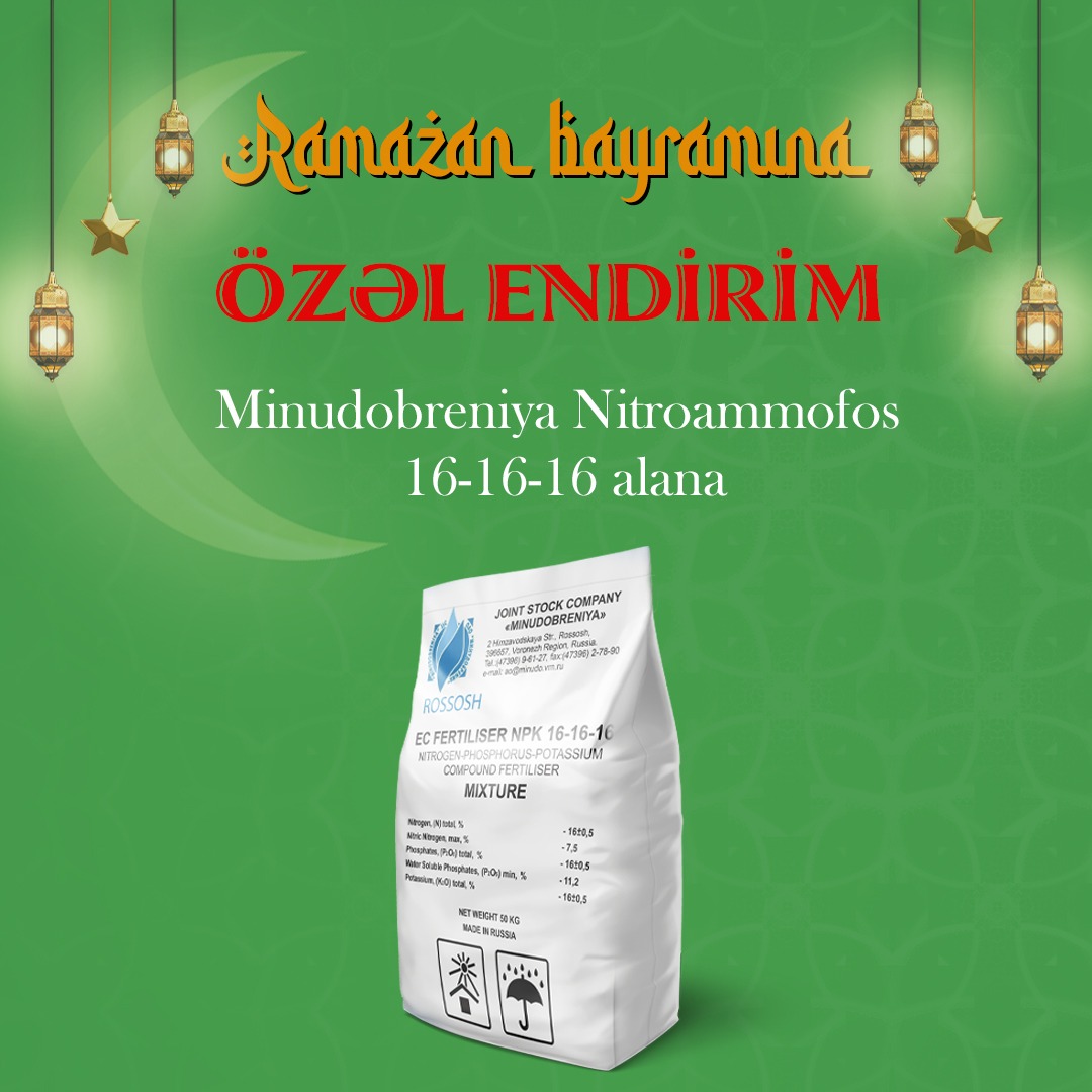 AGROFERT MMC Ramazan bayramı münasibətilə 7 günlük endirim kampaniyası elan edir. Belə ki, 15-21 aprel tarixlərində Nitroamafos(NPK) 16-16-16 gübrəsini 25 ton alana Ramazan Bayramı Özəl Endirimi hədiyyə ediləcəkdir. Bu fürsətdən yararlanmağa tələsin.